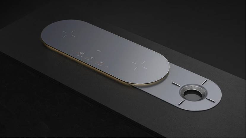本次AWE展出的幻隐・双擎灶,由华帝国家级工业设计中心倾力打造,凭借“隐嵌一体化”设计荣获美国 IDEA 国际设计铜奖,成为全场焦点。这款产品融合东方藏露哲学与极简美学,采用双电磁灶+单燃气灶的创新配置,通过智能滑轨技术实现燃气灶的隐藏式收纳,无需使用时完全嵌入台面,保持厨房空间整洁统一。