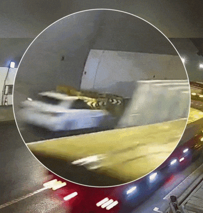 事发3月5日8时,S10温州绕城高速官山隧道内,一辆白色小车行驶中突然方向偏移,左侧车身与隧道防撞桶发生剧烈刮擦,车辆左侧车身受损严重,后视镜完全碎裂。