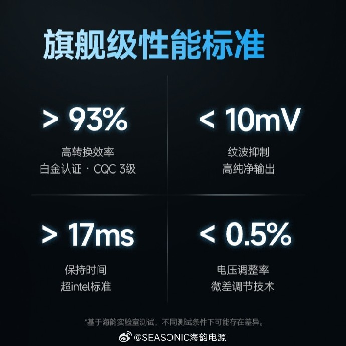 性能方面,转换效率>93%,获得Cybenetics白金能效认证及中国质量认证中心(CQC)三级认证,能效表现达到行业顶尖水平。纹波抑制<10mV、电压调整率<0.5%,保障高精度纯净电力输出,提升硬件稳定性。保持时间>17ms,远超Intel ATX 3.1规范要求,应对瞬时高负载更可靠。