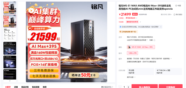 AMD的锐龙AI Max+优点不少,但是配置完了128GB内存,之前内存没涨价时都要1.3万元了,现在的价位普遍要2万元了,甚至更高价位,性价比完全不如Mac Mini。