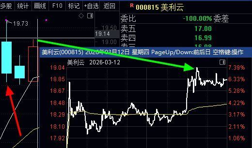 3月10号早上10点10分绿盘下买入:美利云,小跌洗盘1天次日最高大涨7.7%