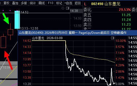 3月5号尾盘买入:山东墨龙,次日最高大涨7.48%后涨停10%开盘