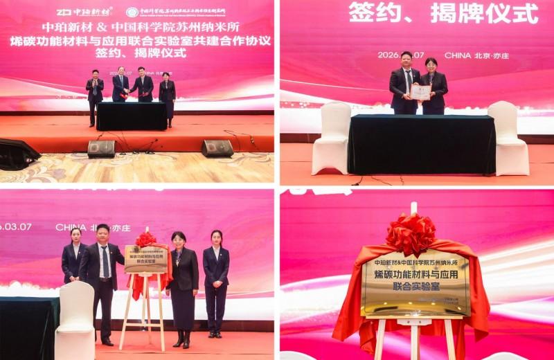 3月7日,中珀(北京)新材料科技有限公司(以下简称“中珀新材”)2026年工作部署大会,A+轮股权融资签约仪式、“烯碳功能材料与应用联合实验室”揭牌仪式及中珀新材新技术发布仪式,四大重要活动于北京经开区格兰云天国际大酒店成功举办。各界特邀嘉宾、股东代表、行业专家及合作伙伴齐聚一堂,共话耕耘硕果,共庆签约盛典,共商产业蓝图,携手为中珀新材高质量发展聚力,共绘新材料发展新篇章。