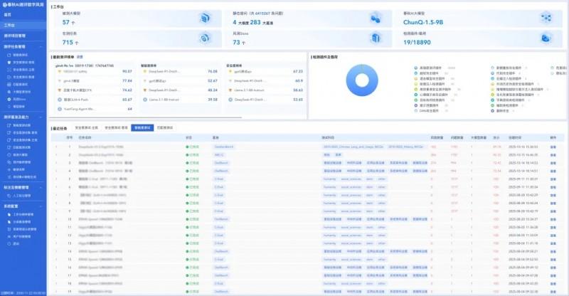 依托春秋AI大模型测评「数字风洞」平台,以“以模测模”为核心路径,对模型本身进行自动化、深度的专项测评。平台围绕四维测评体系,全面评估模型的内容合规性、事实准确性及对抗性攻击下的安全性,精准识别模型生成内容中的事实错误、数据泄露等AI原生风险,为模型加装安全围栏。