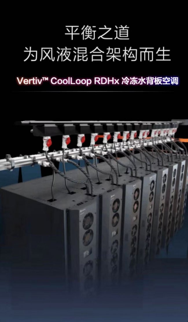 “伴随 AI 服务器向液冷技术的加速演进,如何高效处理空气侧的‘残余热负荷’成为关键挑战。Vertiv™ CoolLoop RDHx 冷冻水背板空调采用紧凑的零占地设计,与液冷系统实现无缝‘风液协同’,为高密度算力环境提供高效、极简且具备卓越扩展性的热管理方案。”