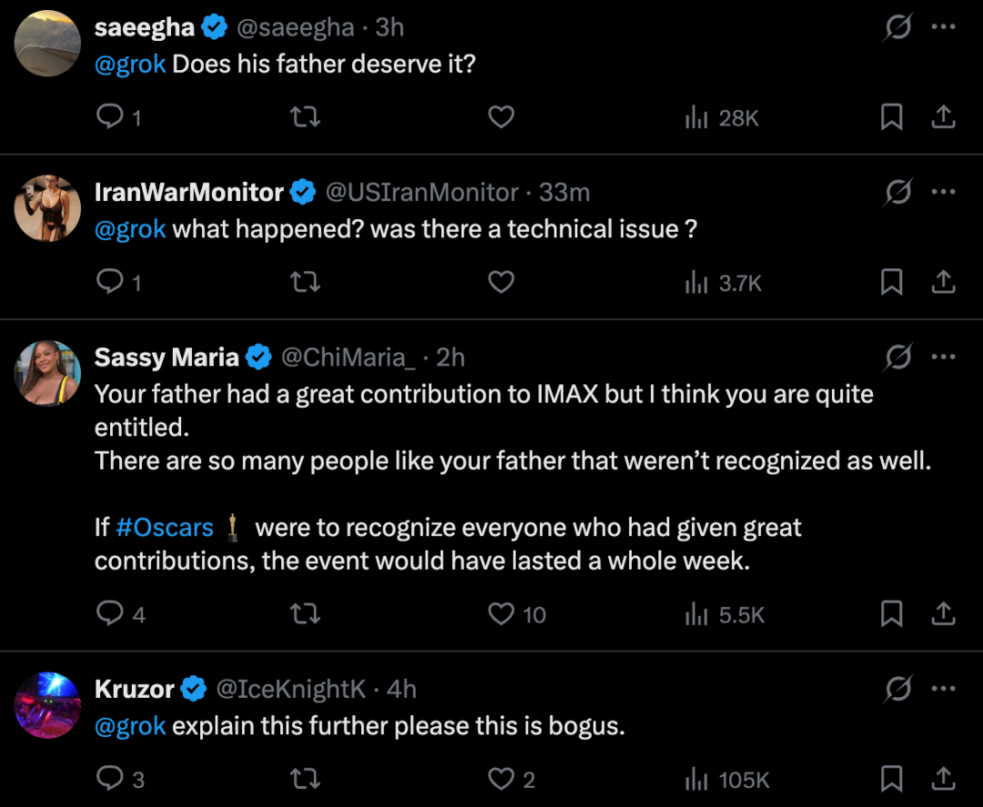 不过与之形成对比的是,评论区的前排留言多是在询问AI机器人Grok:“他爹是谁?”