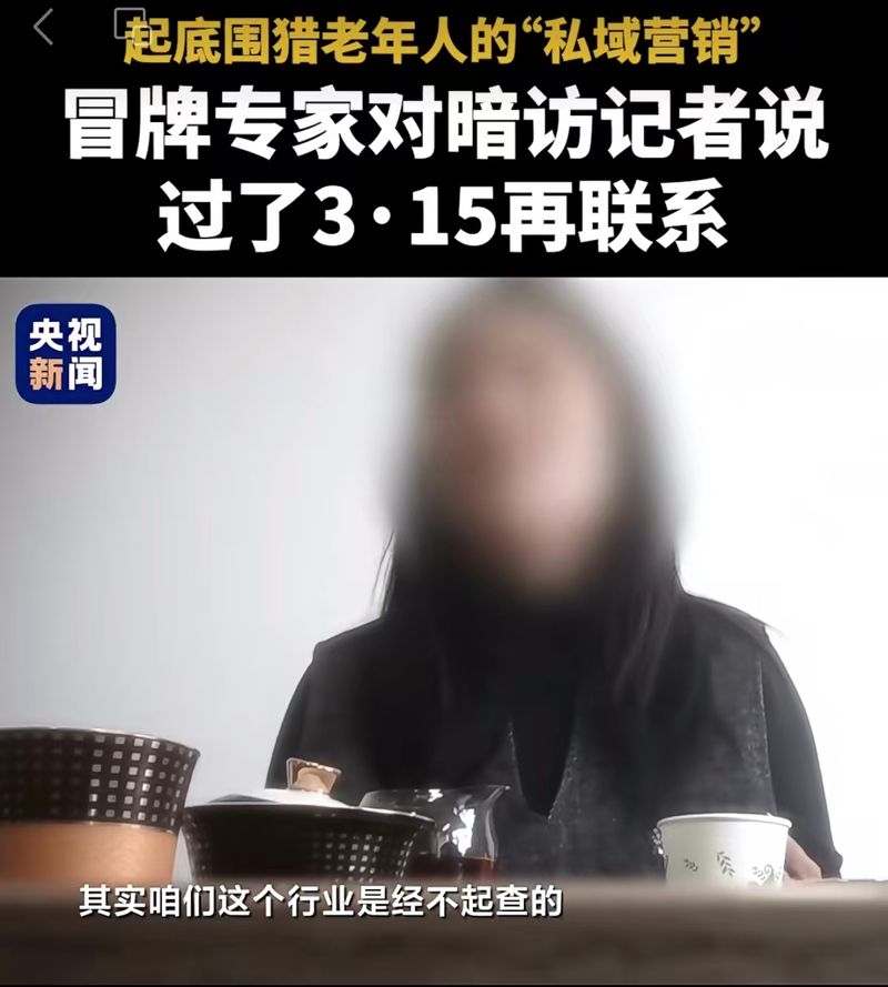 “最好过了‘3·15’吧,现在确实不敢弄。”私域营销链条中冒牌专家的一句真心话,撕开了私域营销围猎老年人的遮羞布。