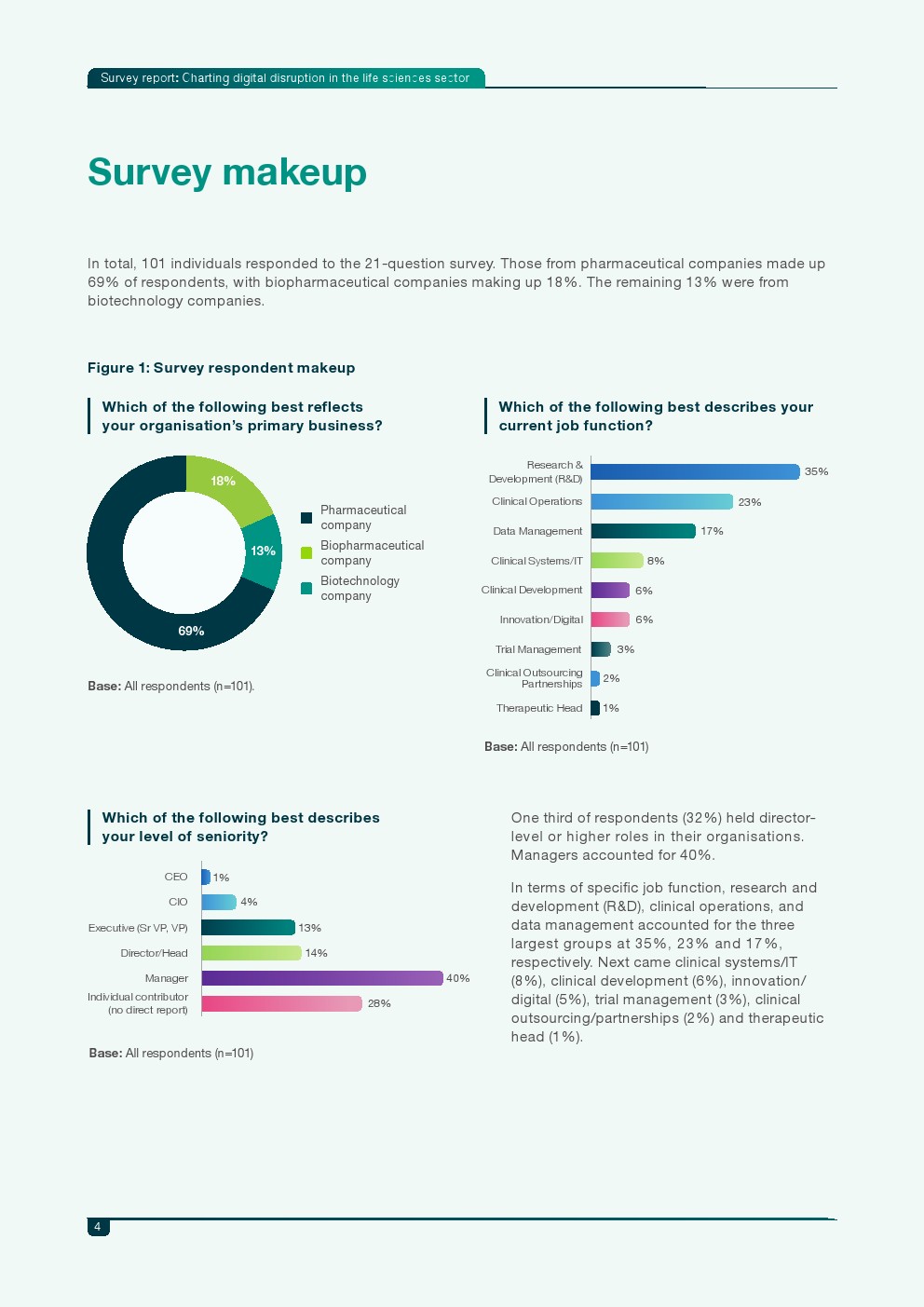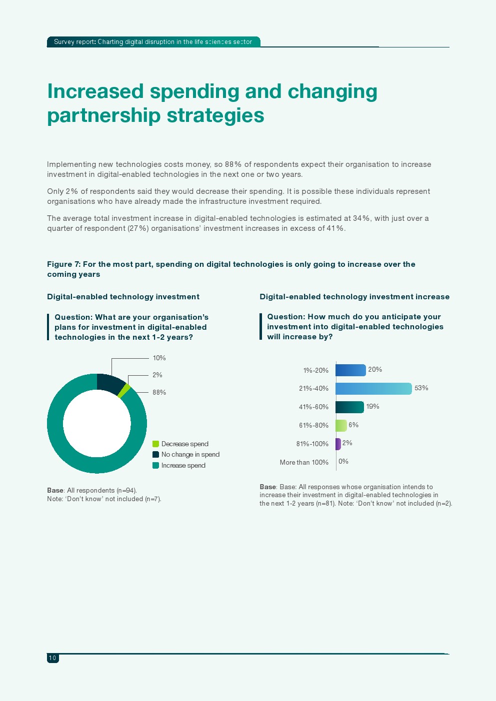 推动数字化转型的核心动力主要集中在研发回报率、产品安全性与精准医疗竞争力。82%的受访者认为数字技术可显著提升研发投资回报,76%认为能够提升产品安全与疗效,另有76%认为数字化是进入精准医疗市场的重要竞争手段。与此同时,企业预计未来1至2年数字技术投资平均增长34%,其中27%的企业计划增加超过41%的投入。