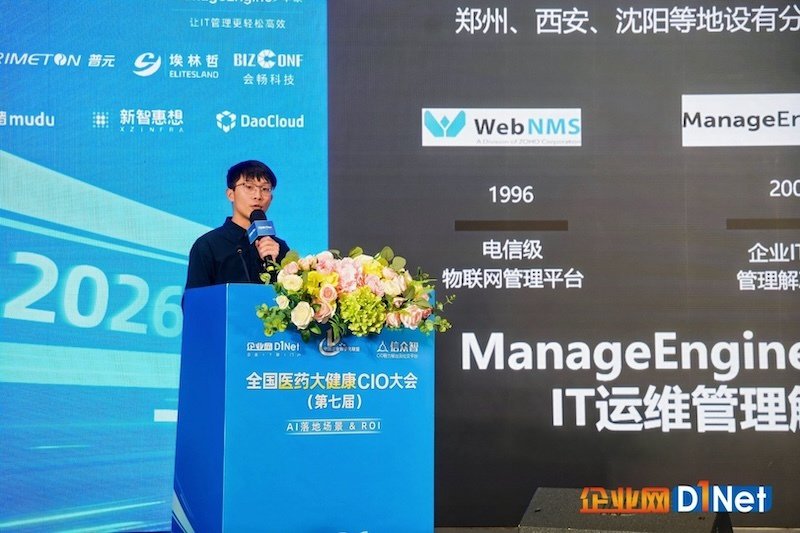 接下来陆文杰结合药企实际案例,分享了卓豪科技的运维解决方案。首先是桌面运维,通过批量执行替代人工处理,为某药企落地远程装机、标准化格式化方案,搭建专属格式化实验室,员工仅需将电脑接上网线,即可自动完成重装与配置,彻底解决了人工逐台操作、百台设备重装耗时费力的问题;第二是数据中心运维,打造全栈可观测性监测平台。为多厂区、分布式数据中心的大型药企,通过 OpManager 监控系统实现所有网络设备、服务器的统一监控、配置与批量告警,确保故障及时通知;第三是标准化运维服务体系搭建,为江苏某药企替换了原有自研的简易提单系统,依托卓豪成熟的 ITSM 产品,结合海量客户的落地经验,为其梳理服务目录与流程,并对接企业微信实现便捷提单,完善了企业的 IT 服务体系。
