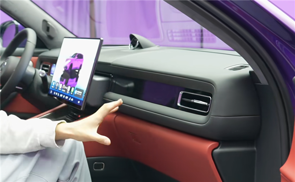 不止如此,它还能作为光影香氛使用,与车内氛围灯联动,且支持连接电子设备支架模块,挂载平板,让副驾驶也有娱乐屏。