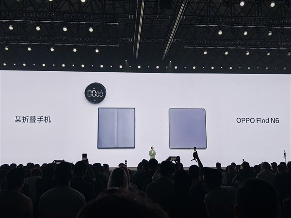 发布会现场播放了一段对比短片,友商刚拆封的折叠屏在静置一小时后便出现了明显的物理折痕,而在同样的测试环境下,OPPO Find N6的屏幕表面依然平滑,折痕近乎不可见。