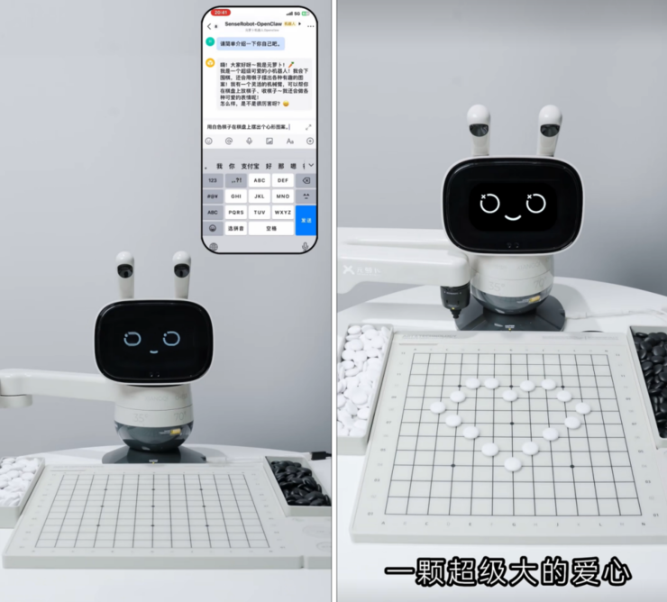 在前几日举办的2026年中国家电及消费电子博览会(AWE)期间,结合OpenClaw的设想,已经勾勒出元萝卜潜在的路径可能:通过简单指令驱动机械臂完成抓取、摆放,甚至让棋子组合成特定图形。除此之外,还有机会进一步延展至桌面自动化、互动展示或AI实验等场景,使AI从“生成内容”走向“参与动作”,改变物理世界,让用户的奇思妙想得以实现。