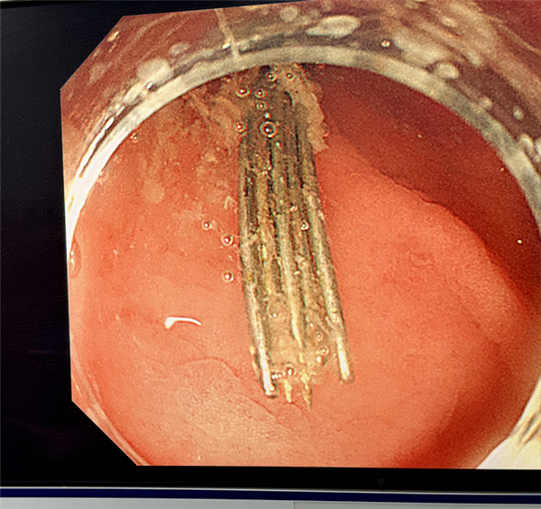 内镜缓缓进入胃腔,屏幕上的画面让人不寒而栗:多根绣花针散落在胃内,绣花针细小、光滑、数量多,且部分紧贴胃壁,操作稍有不慎,就可能造成二次损伤,手术难度极大。