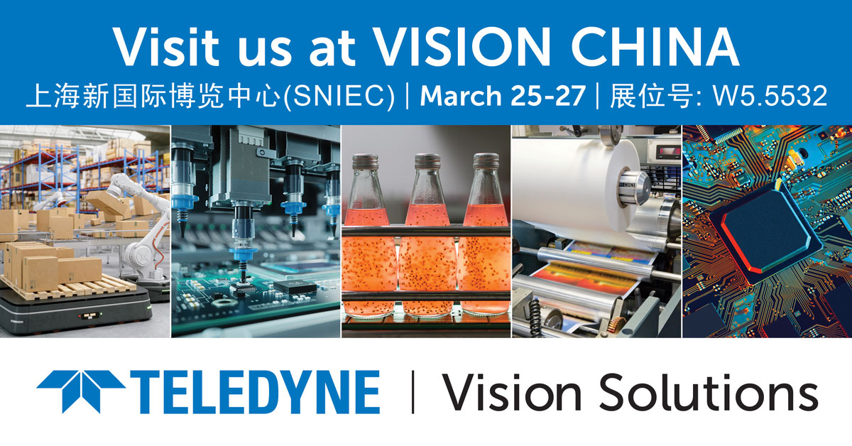 Teledyne 将亮相于 2026 年 3 月 25 日至 27 日 在 上海新国际博览中心(SNIEC) 举办的 上海机器视觉展,并在现场展示其多项成像与视觉技术解决方案。Teledyne DALSA、Teledyne e2v、FLIR IIS 以及 Adimec 将联合亮相 W5 馆 5532 号展位,呈现面向 机器视觉、物流及工厂自动化 等应用领域的多样化技术与产品组合。