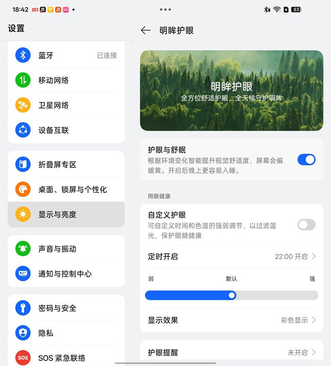 OPPO Find N6在屏幕护眼领域实现突破性创新,首次在折叠屏机型中实现内外屏1nit极致低亮度控制。无论是日常使用外屏回复消息,还是展开大屏进行深度阅读、观影,都能在暗光环境下保持画面柔和发光,有效缓解夜间用眼时的刺眼感与强光刺激。