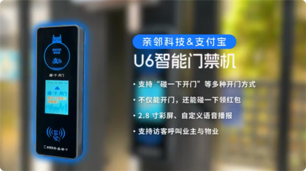 快科技3月18日消息,支付宝联合亲邻科技正式推出U6智能门禁机,将碰一下近场交互能力全面融入社区通行场景。