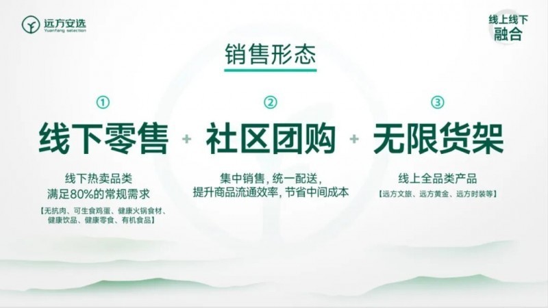 以历经5年沉淀的全中国独一无二品类最全,检测最彻底,性价比最高的健康食品为基础,结合线下零售+私域社群运营+社区店播(生鲜,百货)+社交电商裂变,且不论成绩,远方安选今天所在做的任何商业教科书上都找不到示范案例,在任何国家的零售业态里都找不到对标模型。远方好物招商总监王海平在远方商学院的分享里就曾经说过,终有一天,远方好物会成为全世界最顶尖商学院的经典商业案例。
