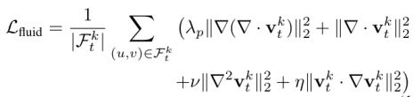 (2) 流体动力学惩罚:简化纳维 - 斯托克斯方程 (Navier-Stokes Constraints),针对流体区域