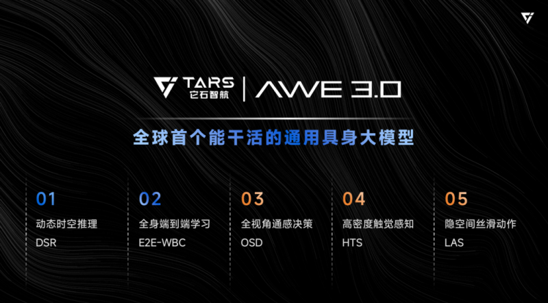 它石智航本次发布的全球首个能干活的通用具身大模型AWE3.0,核心突破在于对物理世界的感知、理解和规划。该模型采用自研AI world Engine架构,进一步摆脱视角依赖,具备人类般的精细流畅操作能力、长程任务稳定执行能力,以及跨场景迁移与泛化能力,完美诠释了“走出温室、落地干活、通用泛化”的核心定位,更继承了对空间规律与物理法则“知其然,更要知其所以然”的理解、预测与推理能力。