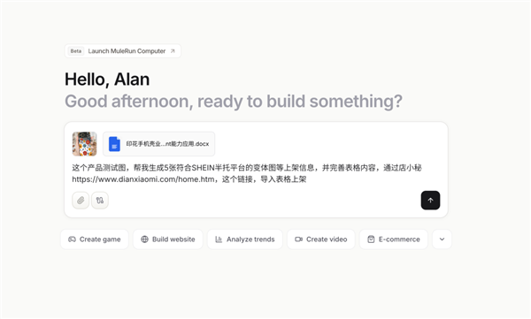 举例来讲,传统电商运营依赖多种工具之间反复切换,人工处理成本高、响应慢。而 MuleRun 在这个场景的逻辑是:让骡子 24 小时在线应答,无需人工轮班;同时全天监控竞品数据和市场趋势,自动筛选爆款产品、管理库存、预判补货周期。