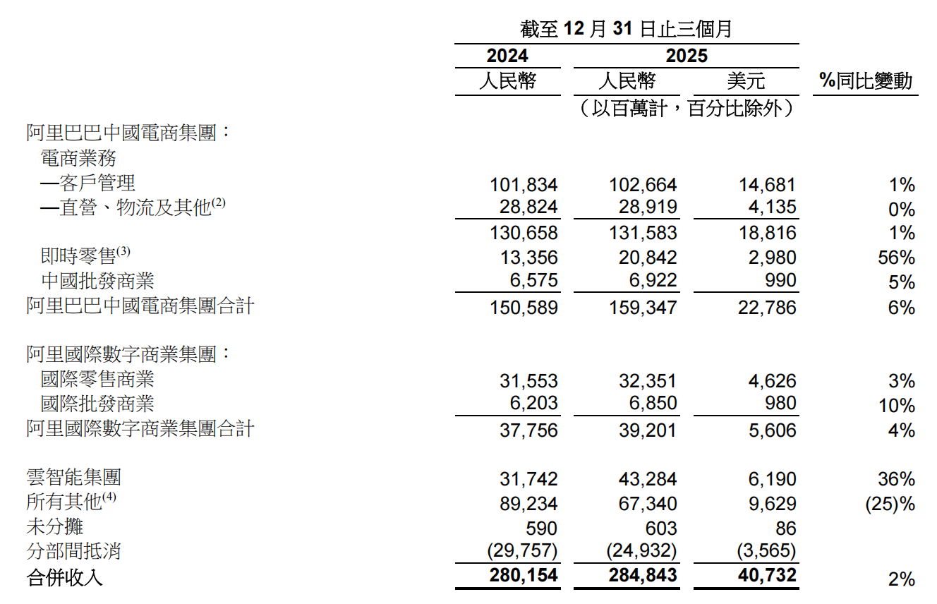 分业务来看,国际零售业务营收323.51亿元,同比增长3%,主要受来自速卖通和其他国际业务的收入增长所带动,部分被 Lazada的收入下降所抵销。