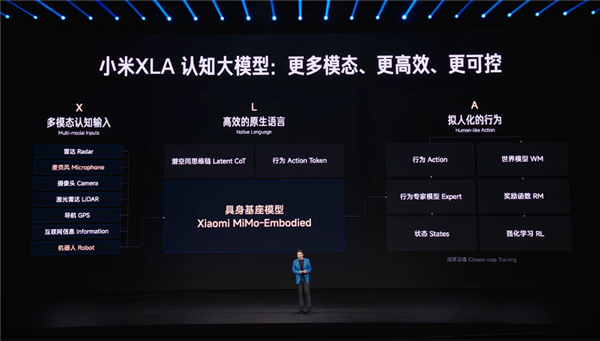 这个X是指的多模态的认知输入,除了视频、雷达、导航信息以外,还融入了声音机器人物理AI的数据,而模型更全面的认知,真实的世界;L就是融入了自身智能的语言,大模型A是整个执行的过程更令人,这就意味着小米的辅助驾驶系统从数据驱动迈入了认知驱动的新范式。