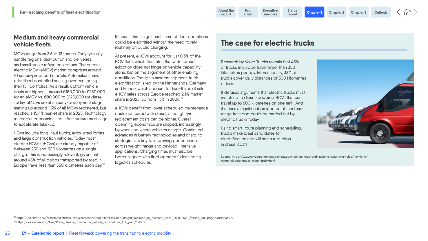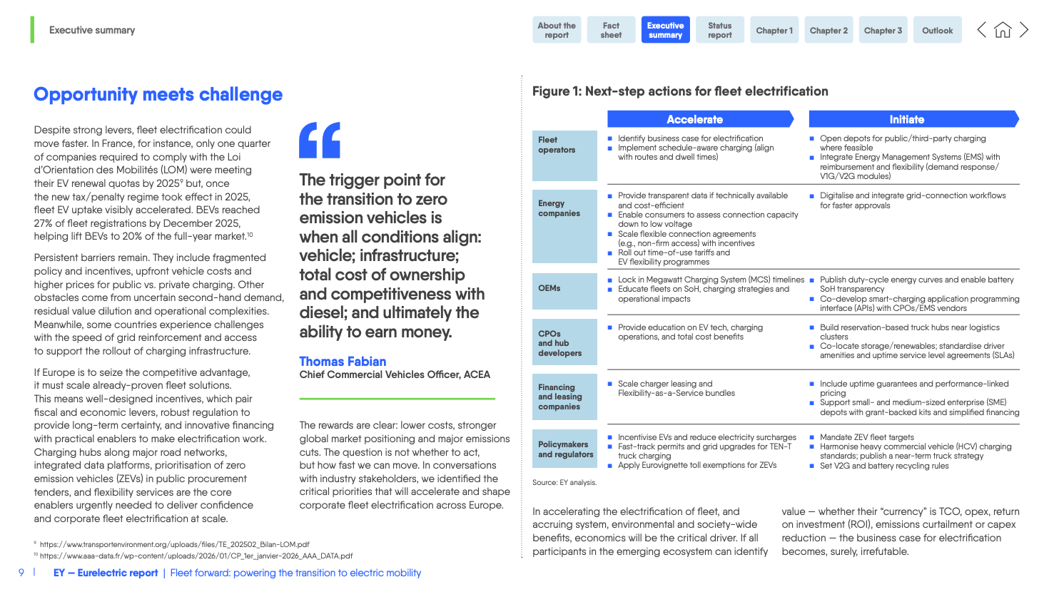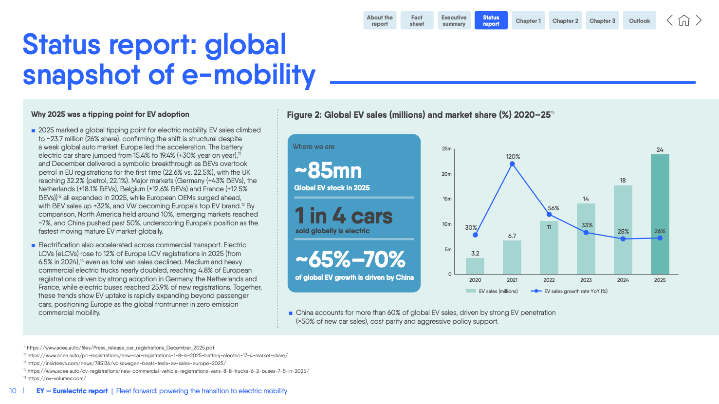 欧洲交通体系正进入结构性转折点。根据报告,企业车队贡献约60%的新车销量,并覆盖几乎全部商用车市场,同时占道路交通碳排放的重要份额,其中乘用车约45%、轻型商用车约12%、卡车和公交约27%。