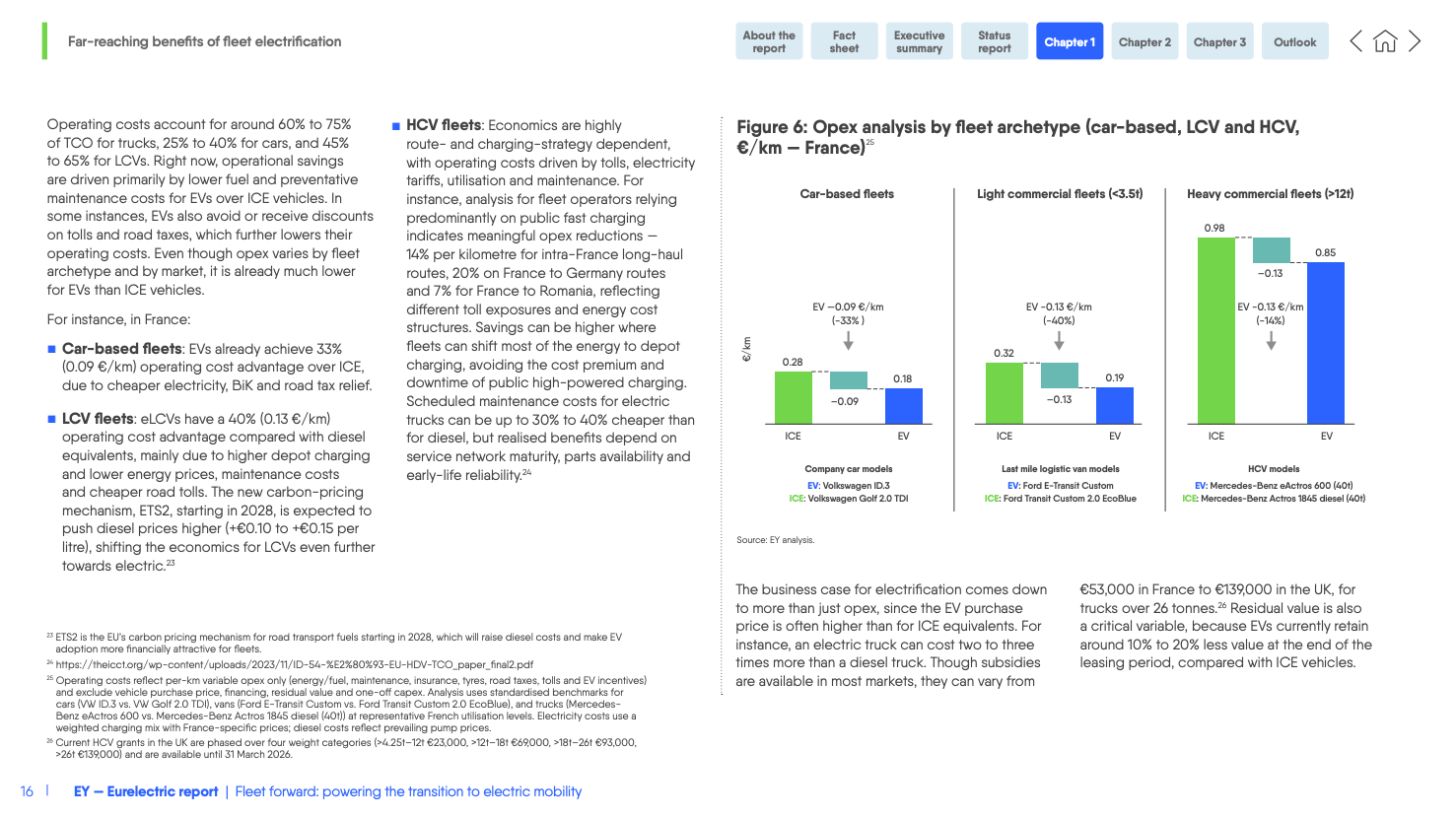 具体到细分市场,法国数据显示乘用车电动化可降低约33%运营成本,轻型商用车降幅达40%。