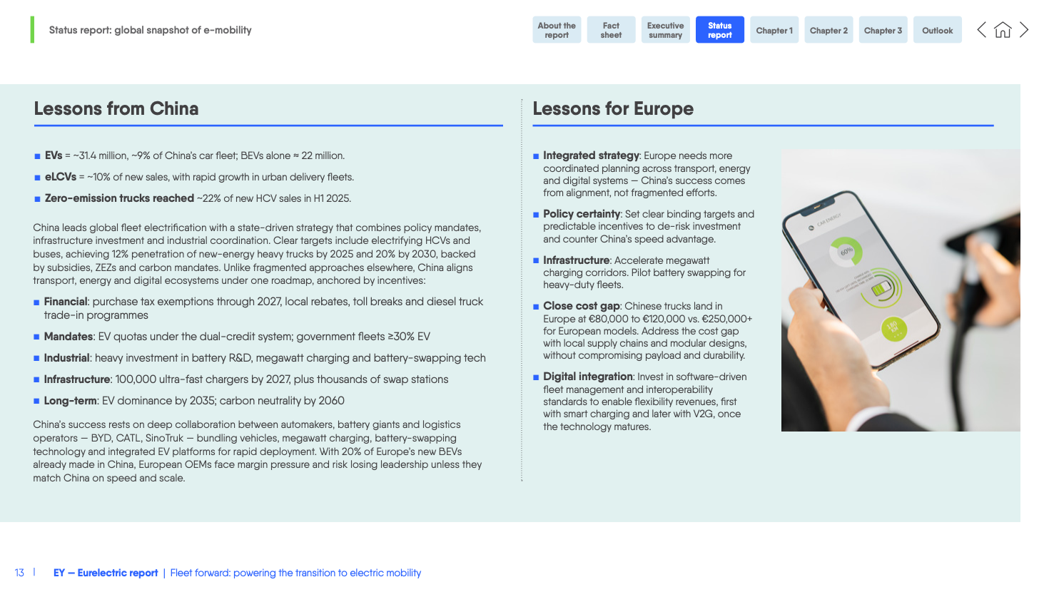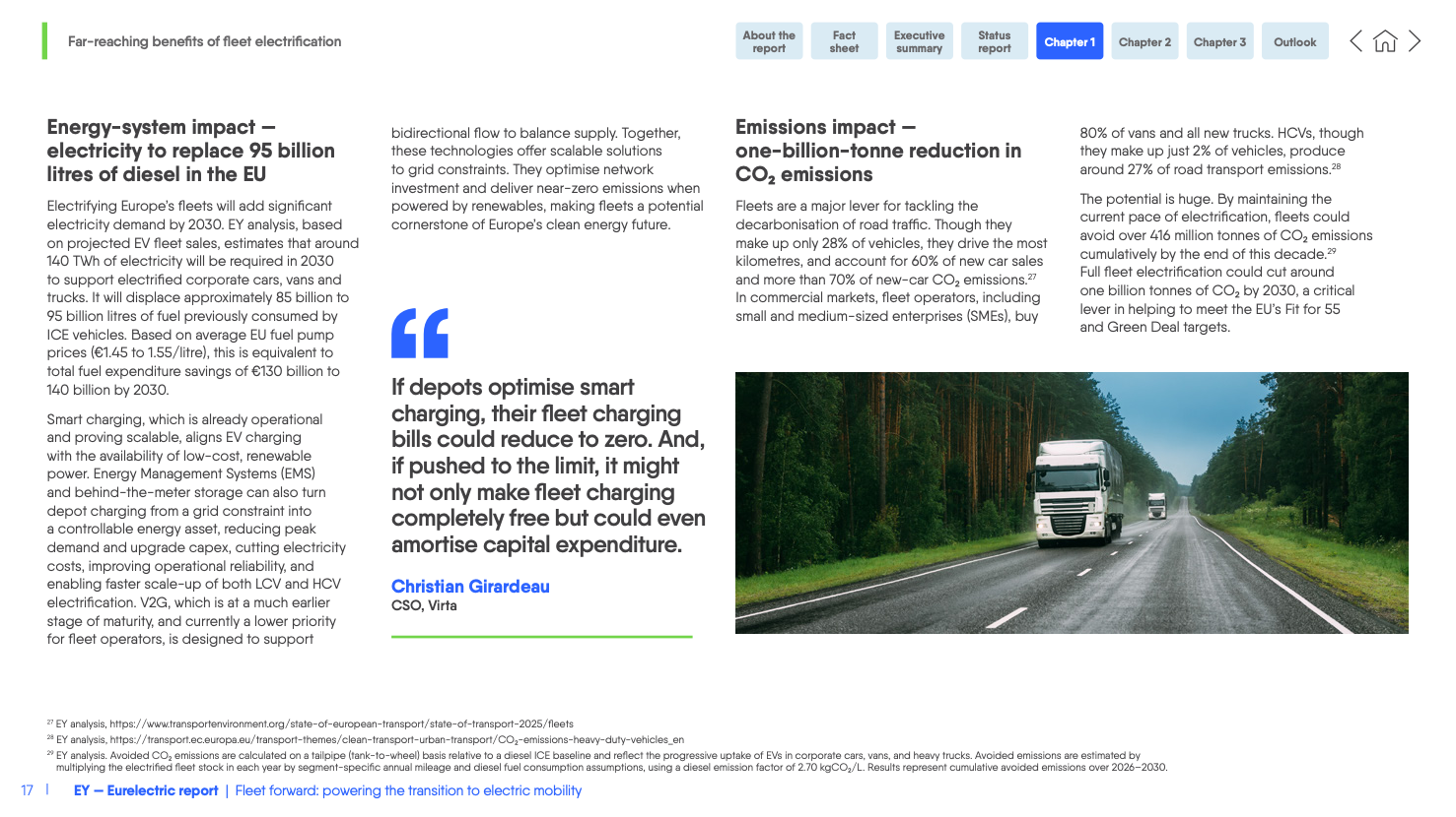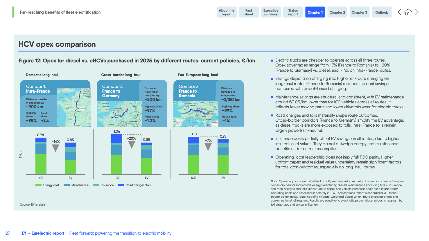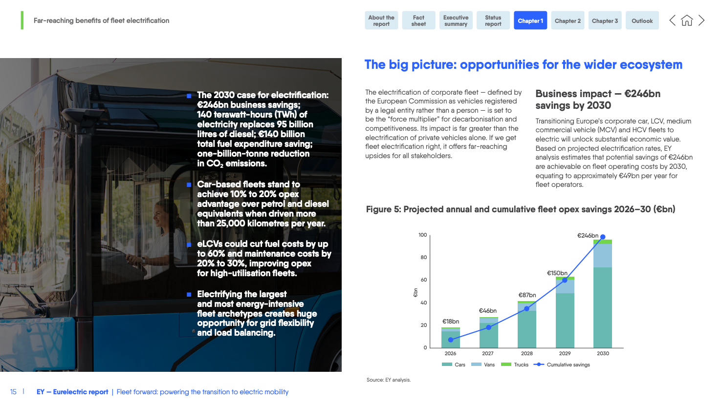 经济性正在成为转型核心驱动力。报告测算,到2030年欧洲车队电动化可实现约2460亿欧元累计运营成本节约,相当于年均约490亿欧元。