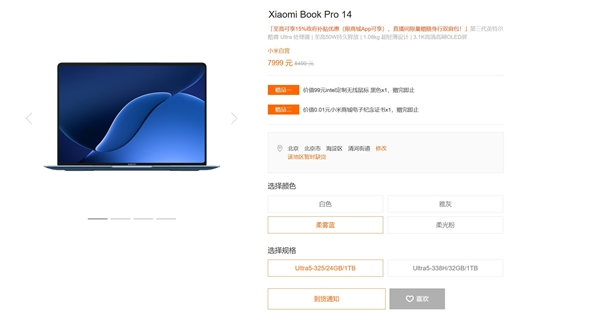 在外观设计上,小米笔记本Pro 14推出了白色、雅灰、柔雾蓝和柔光粉四种配色。整机重量仅为1.08千克,厚度控制在14.95毫米,展现出了极高的工业设计水平。