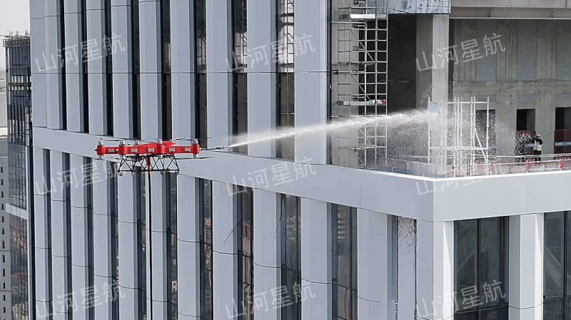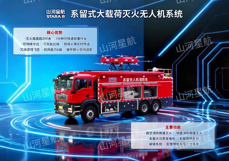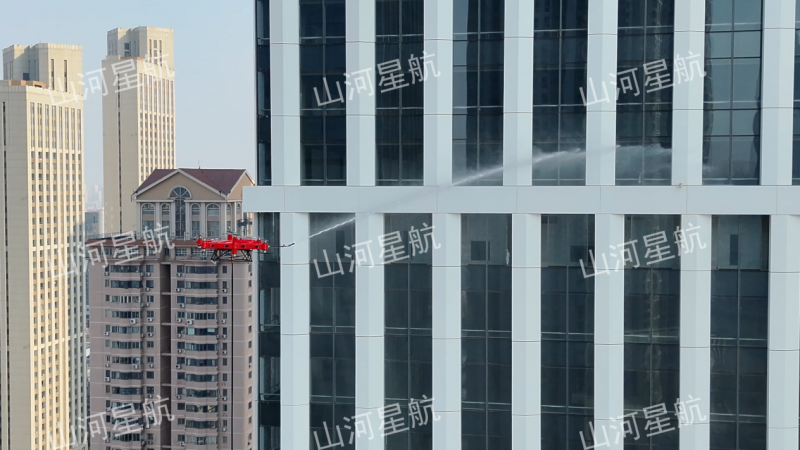 本次现场核查圆满完成标志着项目成果获国家行业主管部门认可。该项目由山河智能、山河星航创始人、首席专家何清华教授领衔,联合清华大学、中国矿业大学深圳研究院、应急管理部沈阳消防研究所、中南大学等8家单位,历时3年,攻克多源扰动下无人机精细抗干扰控制及多重安全防护、挠性管缆流体长距离垂直输运与精准射流控制、复杂系统多组件自主协同控制等多项技术难题,形成核心发明专利29项,成功研制出一款面向超高层建筑外立面火灾的空地协同消防装备——系留式大载荷灭火无人机系统。装备运用高推重比大载荷系留式无人机、一体式综合管缆及高效自动收放系统、集成式综合地面移动平台,核心技术达到国际领先水准,形成“八大战斗力”,突破了现有地面装备“进不去、展不开、够不着、灭不了、不安全、”等瓶颈,已在全国10多个城市参与完成高层建筑消防演练30余场。