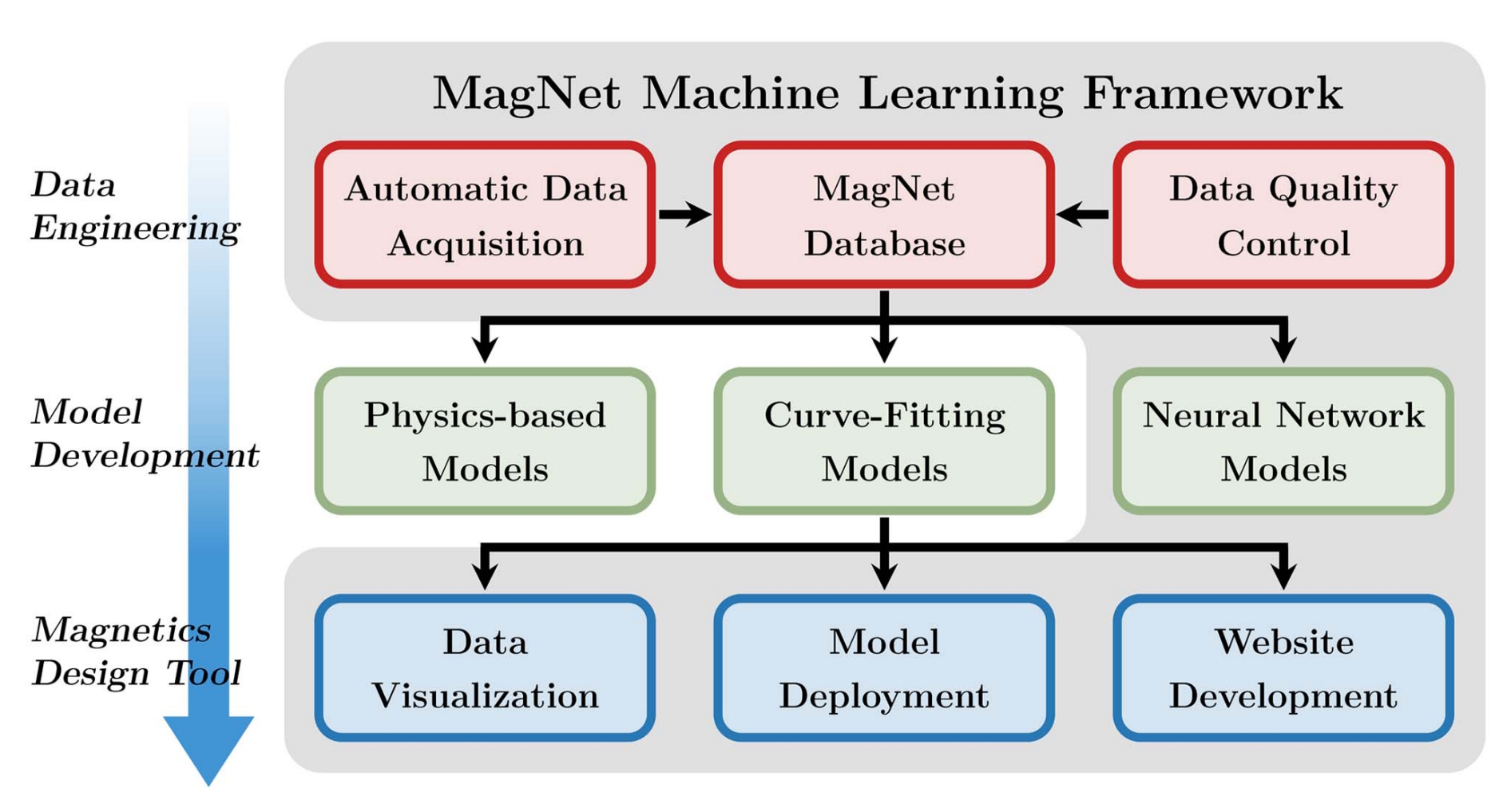 MagNet 挑战赛是一项开源研究计划,旨在推进功率磁性材料的数据驱动型机器学习建模。其核心目标是借助机器学习提升铁损预测精度、缩短设计优化周期,并构建标准化开源神经网络模型。