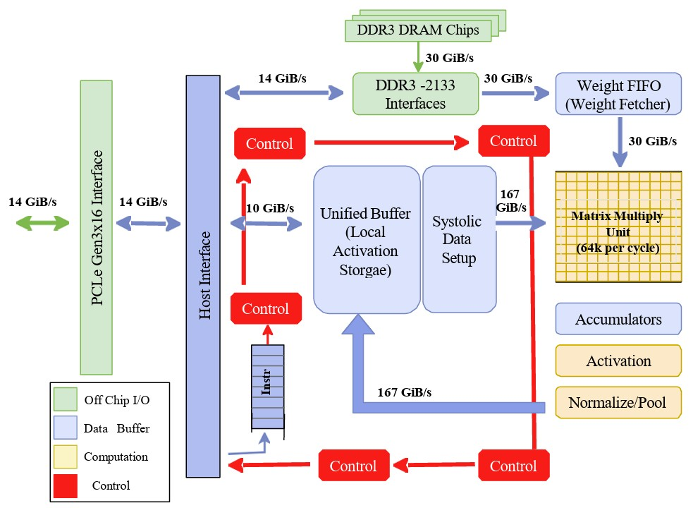 答:数据中心推理通常采用专用集成电路(ASIC),如谷歌张量处理单元(TPU)。图 2 框图详细展示了该架构的内部数据通路与控制接口。