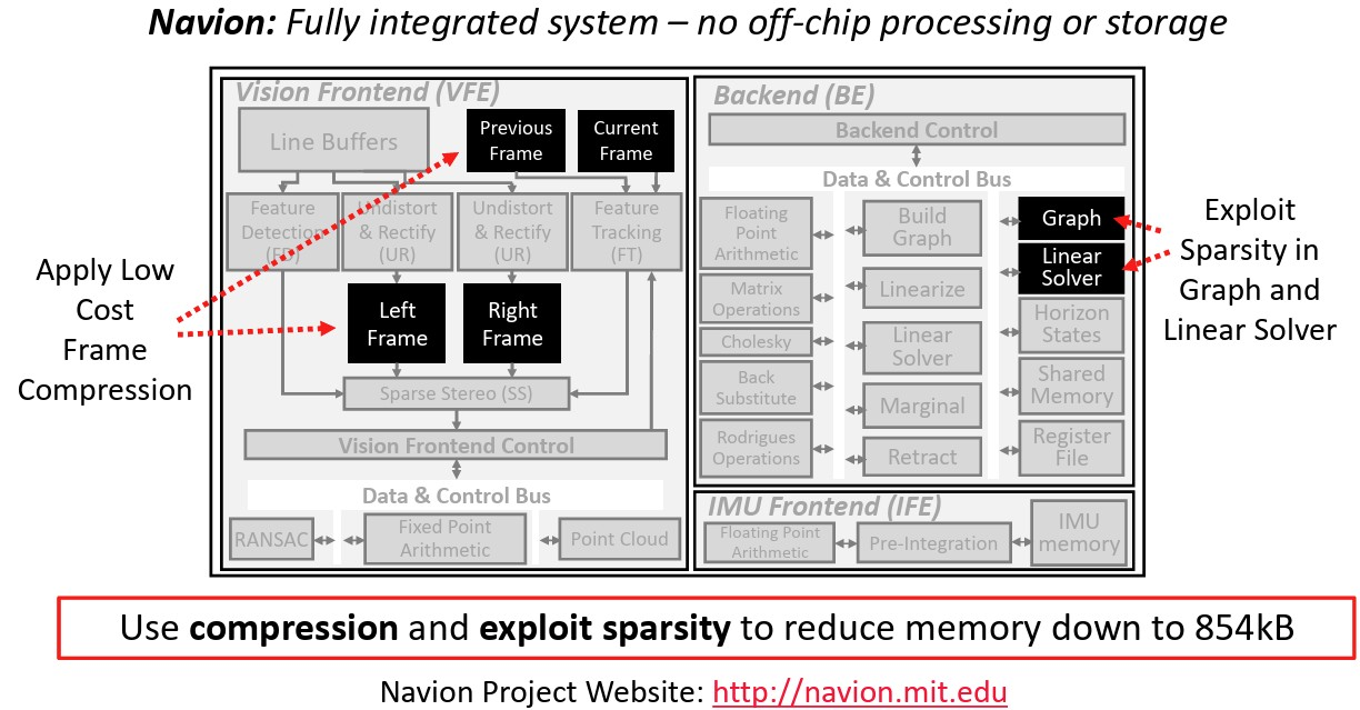 为摆脱对片外 DRAM 的依赖,Navion 采用了几项关键策略: