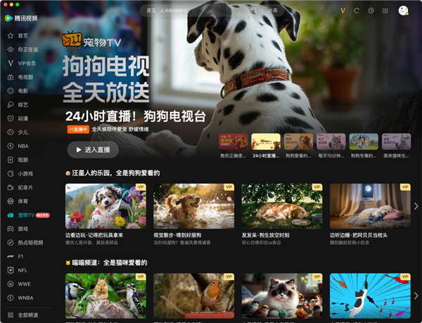 腾讯视频会员可限时免费体验,用户更新最新版APP,搜索宠物TV即可快速开启使用。