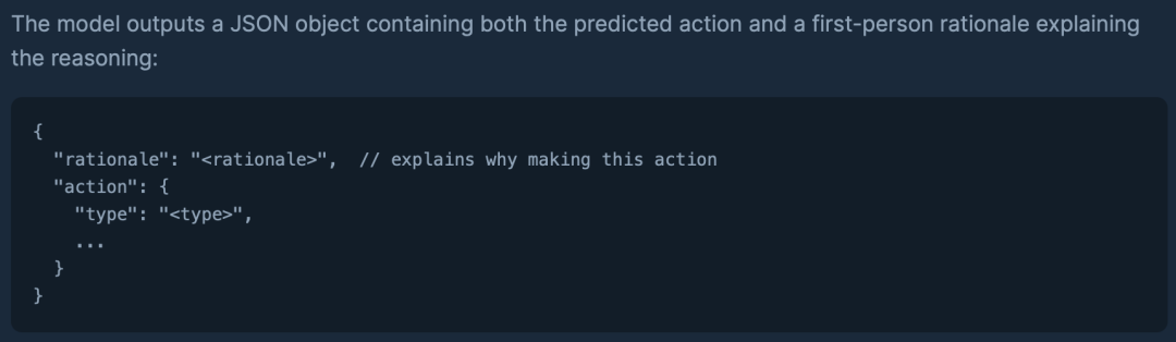 模型以用户过往浏览页面及对应操作作为输入,并以结构化的 JSON 形式输出对用户下一步动作(Action)的预测以及其背后的推理逻辑(Rationale)。