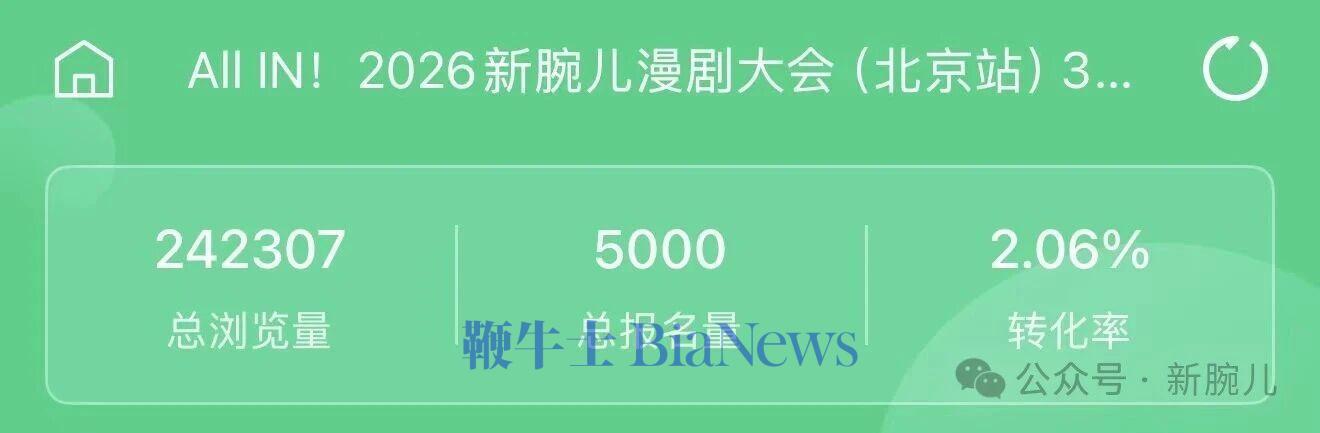 本次,新腕儿漫剧大会(北京站)总浏览量24.23万,总报名量5000人。