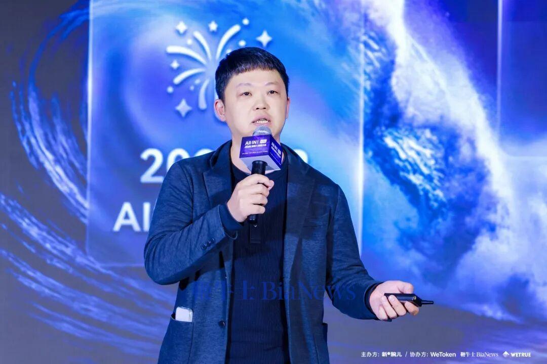 尚乎彩链漫剧智能体项目负责人Shaun Song上台分享推介项目。