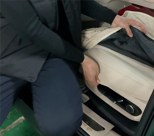 拿到车子后,车商发现这辆M8座椅上套着座套,这很正常,但座椅套上又有一层套,也就是套上加套!