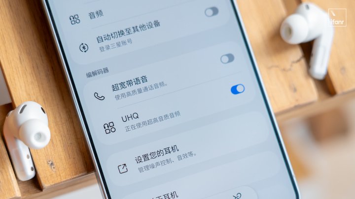 只要在支持的手机上开启「超高音质(UHQ)音频」的选项,并用适配这款编码的三星手机连接三星 Galaxy Buds4 系列耳机,就能够实现最高规格的播放。
