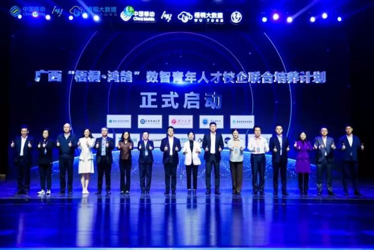 在大赛上,相关合作项目与计划正式启动,包括广西锰业智能冶炼大模型数据训练基地、广西“梧桐·鸿鹄”数智青年人才校企联合培养计划、中国移动(广西)“梧桐·鸿鹄”实训认证中心。政府、企业、学校三方协同发力,精准对接产业需求与教育资源,高校持续为企业输送高素质数智人才。