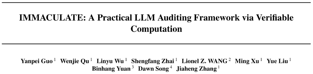 论文题目:IMMACULATE: A Practical LLM Auditing Framework via Verifiable Computation