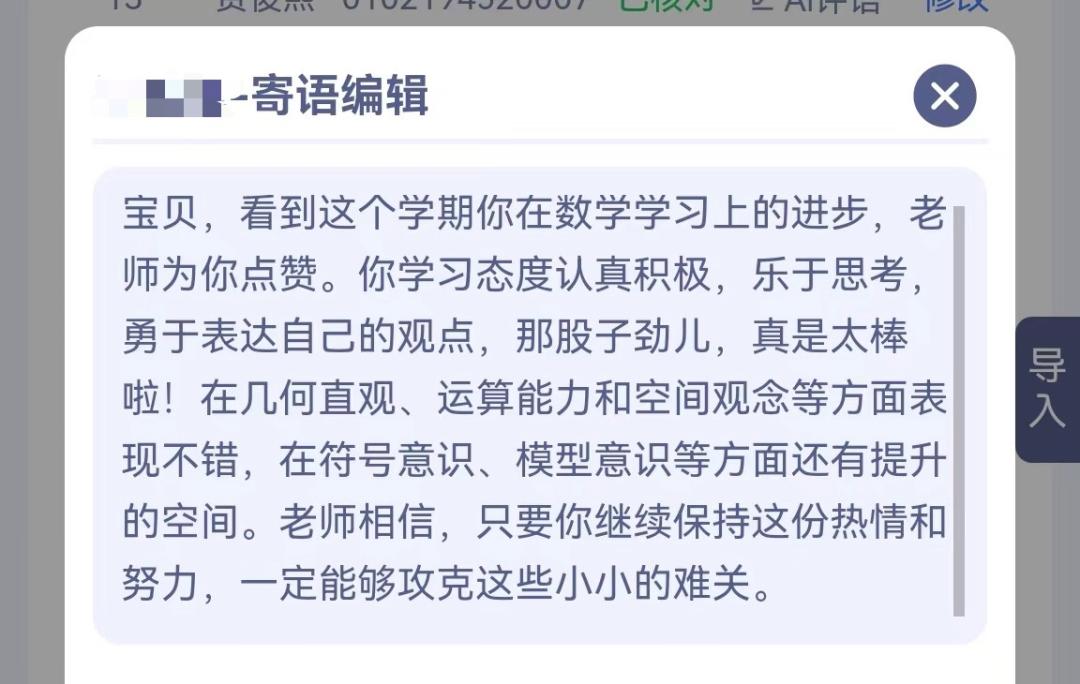 最在乎评语的,也许并不是家长,而是学生本人。他们想知道自己在老师心中的形象,希望自己在校园生活中的一点一滴都能被老师关注到。如果老师能在评语中多一些温暖和鼓励,而不是AI式的“套话”,一定能更受到家长和学生的欢迎,也有利于树立老师的正面形象。