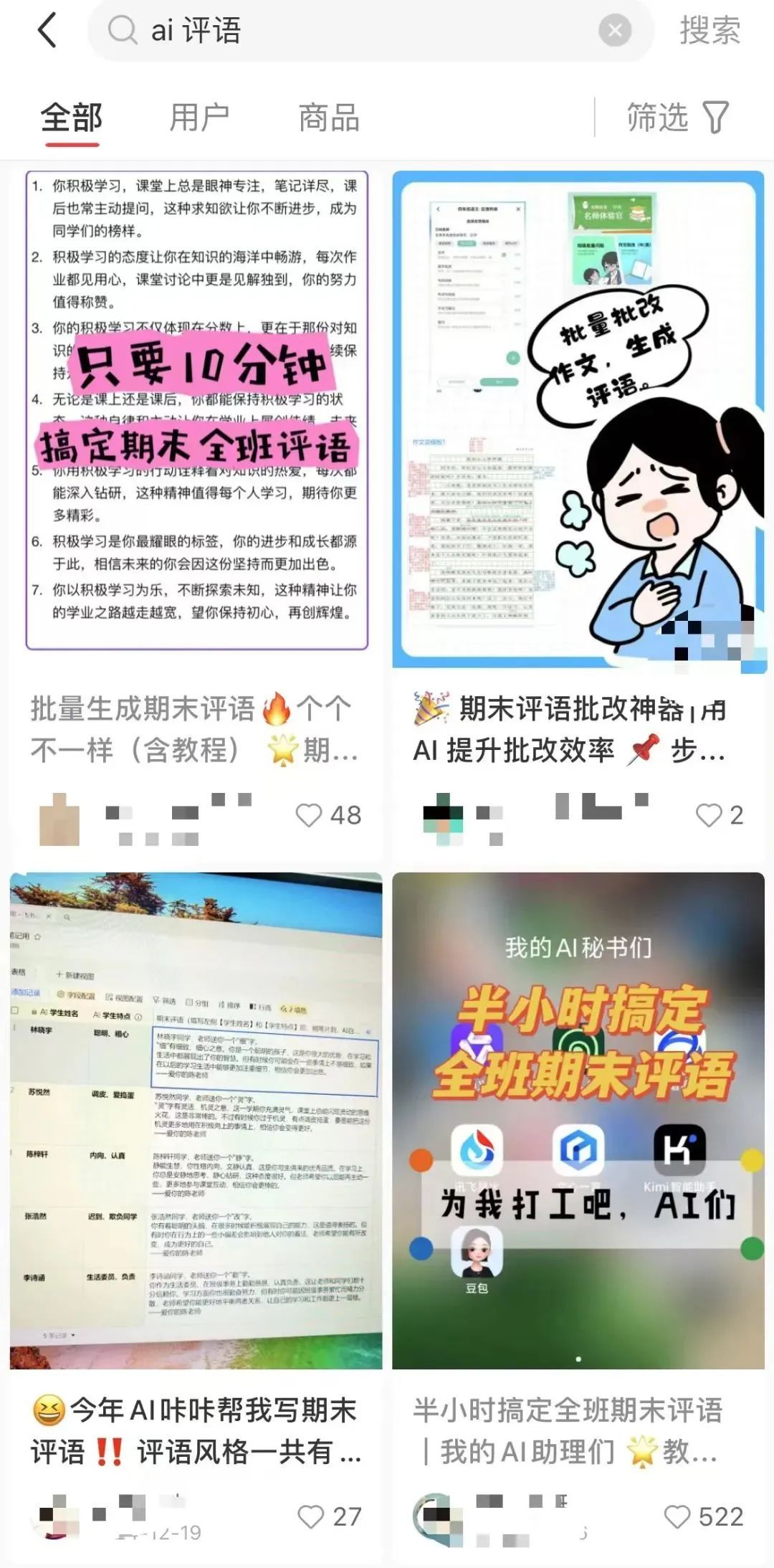 每年期末,给学生写评语都是老师的一项重要工作。据媒体报道,今年老师群体中有一个新的潮流:用AI写评语。一搜索关键词,各种教程、软件都跳了出来。看来在关注这个方式的老师,并不在少数。