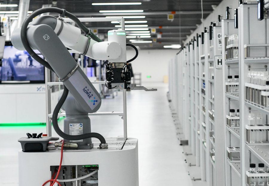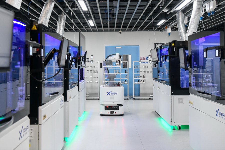 上海,张江,晶泰科技的AI机器人实验室里,百余台机器人实验工作站正忙碌运转,固体粉末称量加料、控温搅拌反应、取样稀释过滤……各模块相互配合,有条不紊推进实验。看起来,和新民晚报记者一年前探访时,并没有多大不同。可变化,悄然间发生着,改变着,生长着。这家以制药而闻名的独角兽,持续放大AI赋能效应,技术与千行百业碰撞出新生的火花——近期,晶泰科技连续官宣了与化工、能源和新材料等产业的合作,一幅蕴含无限可能的蓝图缓缓展开。