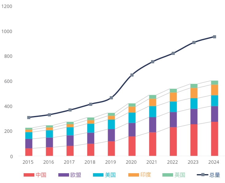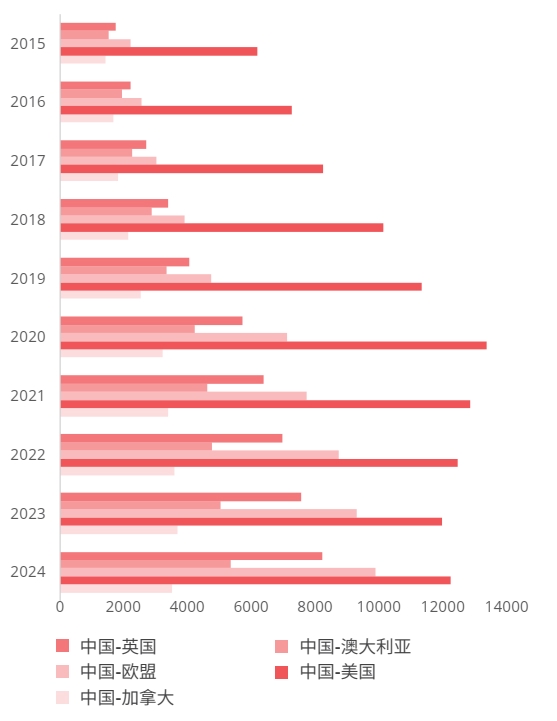 国别研究显示,2015年截截至2024年间,全球人工智能出版物排名前五的国家/地区的格局发生了转变。中国增长势头尤为显著,AI出版物总量从2015年的6.01万篇上升截截至2024年的30.04万篇,占全球总量29%。2018年,中国的出版物总量超越欧盟,居全球首位,2022年超越欧盟和美国的总和。印度也展现出明显的追赶态势,2015年其AI出版物总量为1.82万篇(仅为美国的1/3),2024年提升至8.51万篇,几乎与美国(8.57万篇)齐平。