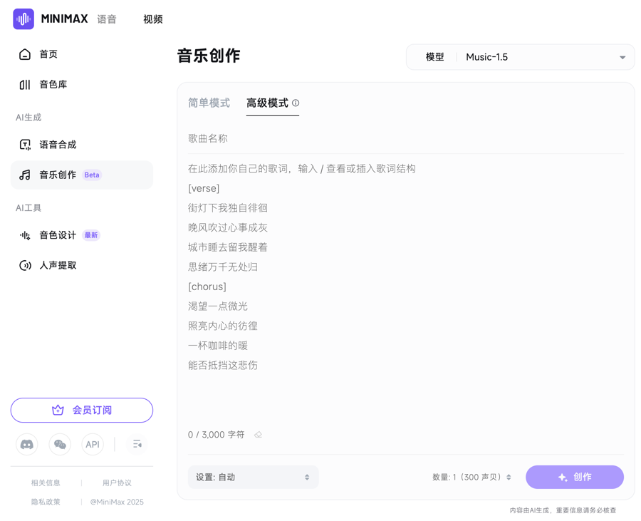 今天,上海通用人工智能企业MiniMax发布的一段视频引起众多网民关注,这段视频的画面均由“海螺”视频大模型生成,音乐均由Music 1.5大模型生成。黑人歌手的动情吟唱、萨克斯管的悠扬乐音、架子鼓的激情敲打……Music 1.5生成的音乐颇有感染力,且时长达到4分钟,较上一代音乐生成大模型有了长足进步。MiniMax研发团队介绍,新一代音乐生成大模型实现了四个方面的突破。首先是歌曲控制力的提升。Music 1.5支持长达4分钟的音乐创作,出品即成品,不再仅是demo小样。在简单模式下,用户只需输入几个关键词或一句自然语言描述,它就能生成完成度很高的歌曲作品。在高级模式下,用户可通过“16种风格×11种情绪×10个场景”自定义音乐特征,对歌曲的前奏、主歌、副歌等不同段落进行歌词编排,丰富用户的创作体验。例如,用户输入“温柔女声嘻哈唱首流行歌曲”这样的简单描述,一首大模型填词、作曲的女声作品《甜甜圈》很快问世。输入一首创作好的完整歌词,选中“爵士、浪漫、深夜酒吧”等关键词,一首动听的爵士乐《回眸》就创作完成了。新一代音乐生成大模型的第二个突破是人声自然饱满。它能对人声唱腔和发音技巧进行深度建模,生成不同声线、唱腔的音色。与同类产品相比,Music 1.5生成的声音更具通透感和真实感,转音顺畅无断层,让歌曲的情感表现力更为丰富。这一技术突破,解决了过去人工智能生成音乐中人声机械化、缺乏情感表达的问题。