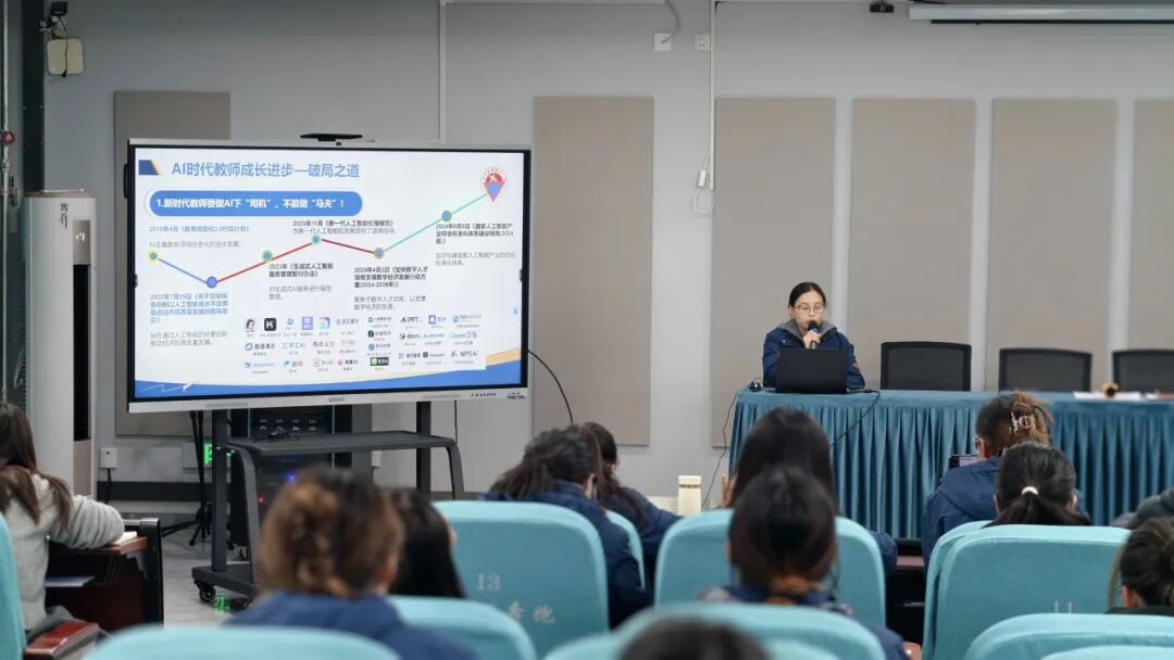 穆洁洁老师以“汽车与马夫”的发展隐喻切入,深刻剖析科技浪潮下“国家对AI的急迫探索”与“教育领域的认知落差”,提出不同年龄段对AI的认知分层:老年人视AI为“辅助搜索工具”,中年人视AI为“智能决策顾问”,年轻人视AI为“生活工作操作系统”。会议明确,教师需主动实现角色三重转型,成为“学生成长与AI应用的双重导师”,核心要义和逻辑是“AI不是替代教师,而是赋能教育”,教师需学会下达“医嘱式”精准指令,以“引导深度思考”替代“直接输出答案”,充分发挥AI在教学中的辅助增效作用。