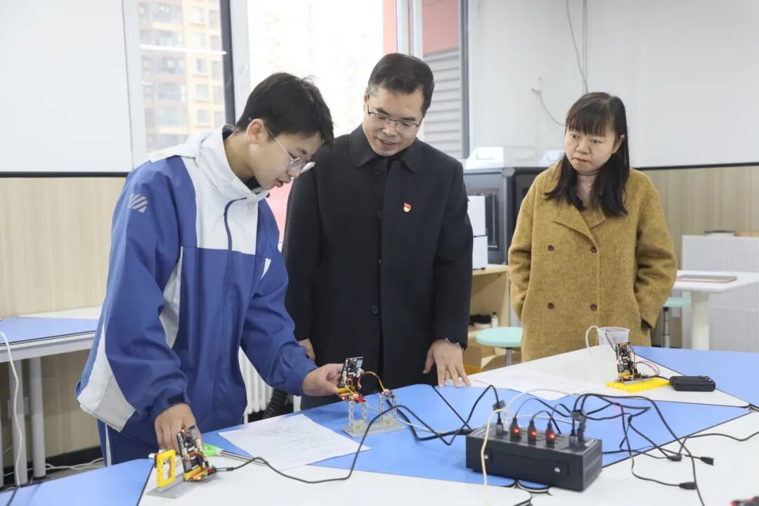比赛期间,石宝珠校长与任晓歌副校长亲临各个赛场,与同学们开展了现场交流。他们认真倾听同学们对作品创意的阐述,仔细观看作品的功能演示,并针对作品的优化完善以及实际应用提出了宝贵的指导意见。提出了拓展建议。