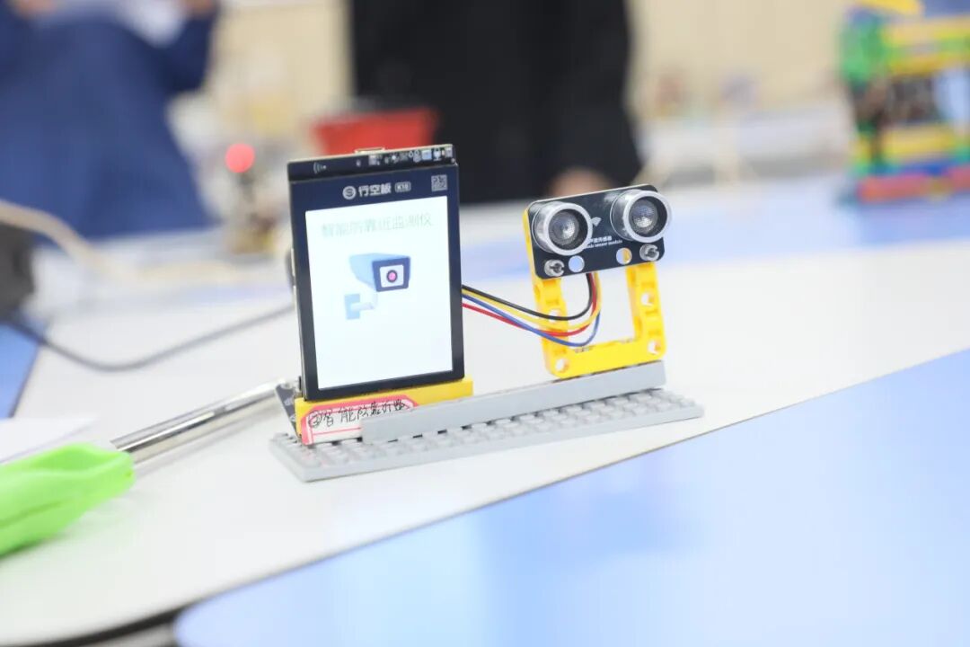 危险区域近距预警仪针对实验室、施工等危险区域,能识别人员靠近并及时警示;智能家居控制系统支持语音交互,可便捷操控灯光、窗帘等家居设备。这些作品展现了同学们运用跨学科知识、创造性解决实际问题的综合实践能力。